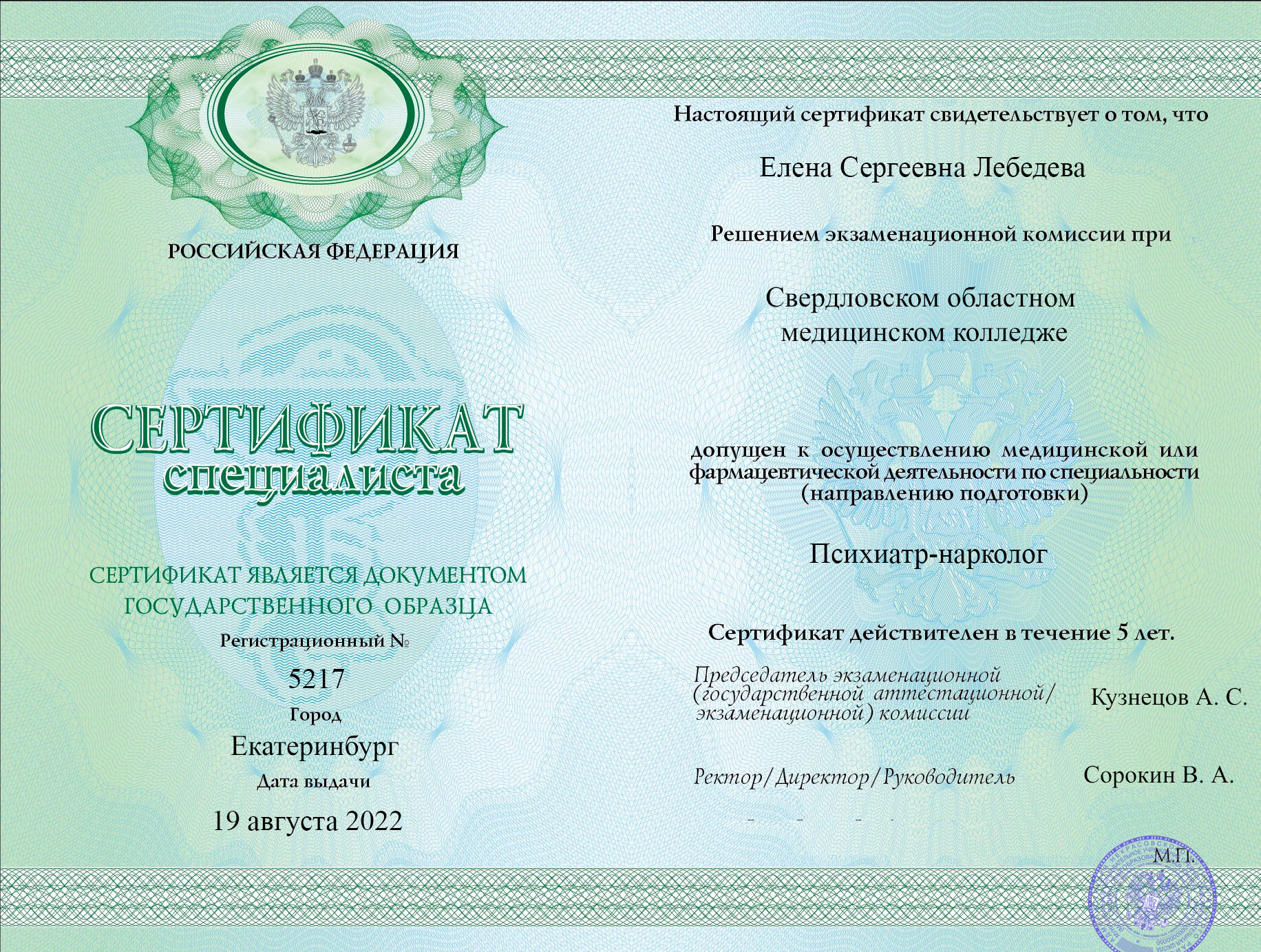Елена Сергеевна Лебедева врач нарколог клиники доктора Стукаловой в Тамбове
